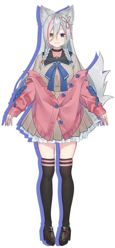 狼モチーフS系の女の子。オッドアイ、ピンクメッシュ、銀髪で、ビジュ◎!